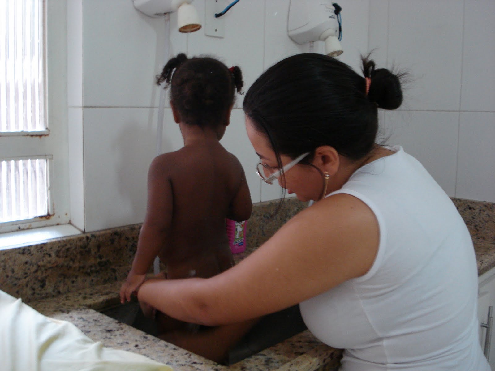 Nossa nem acredito que esta acabando, vou sentir tanta falta desses "fedozinhos" rs... Apeguei-me tanto, como aprendi nesses dias, aprendi que musica acalma muito as crianças, que nem que seja 1 vez na semana, tem divertir com eles num passeio, brincar é essencial, me surpreendi com as crianças de idade de 0 a 2 anos, é a idade que mais precisa da gente, como gostei de aprender e ensinar, gostei até de todas as fraudas trocadas, mesma as que fedia muitoo.... (sim, eu consegui trocar, essas fraudas tão fedidinhas kkk...) Que delicia acorda cedo, fazer trabalho voluntario, conseguir esquecer todos problema quando chego na creche e sou recebida com abraços, carinhos, daqueles tão inocentes beijos e sorrisos. No meu primeiro dia com os maiores de 03 a 06, queria me atirar pela janela, como são levados, mas com jeitinho vai se ganhando a confiança deles, como foi difícil, mas não pode se chegar com muita cede ao pódio, aprendi isso também! Aprendi que crianças só fazem pirraças e birras com quem deixa... Também tirei a má impressão que tinha sobre as creches, claro que nenhuma é igual a outra, mas a que eu fiquei, crianças são tratadas com muito amor e carinho. Então fico por aqui, deixo algumas fotos, de alguns momentos na creche!